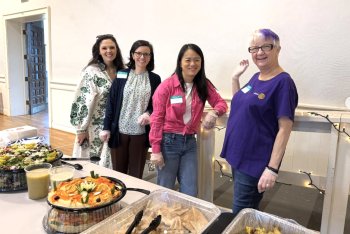 First, we meet weekly, on Thursdays, where we eat lunch together (you can come too), talk about our projects and goals, and hear programs from interesting speakers and others in the Durham community and leaders in community service. Sometimes the speakers – also known as programs – just have knowledge to share about an interesting topic (for example, the marketing of art, the history of Durham and solar eclipses, to name a few) and sometimes they are leaders in non-profit work or the Durham community who talk about projects and organizations we want to get to know and see how we can help. We also chat, joke around, donate Happy Dollars and have a nice break in our workday.